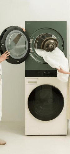 LG Electronics offers various sizes, including a compact model for small spaces. The latest AI Wash Tower features smart functions like “AI Time Guidance” and “AI My Course” for customized wash cycles. It also boasts a 25kg drying capacity—the largest in Korea—ideal for bulky items.