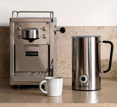 Sjöstrand blends classic Scandinavian design with a commitment to sustainability. Their espresso-style capsule machines come in elegant finishes like mirror steel, black, and beige, built with repairable parts to last.