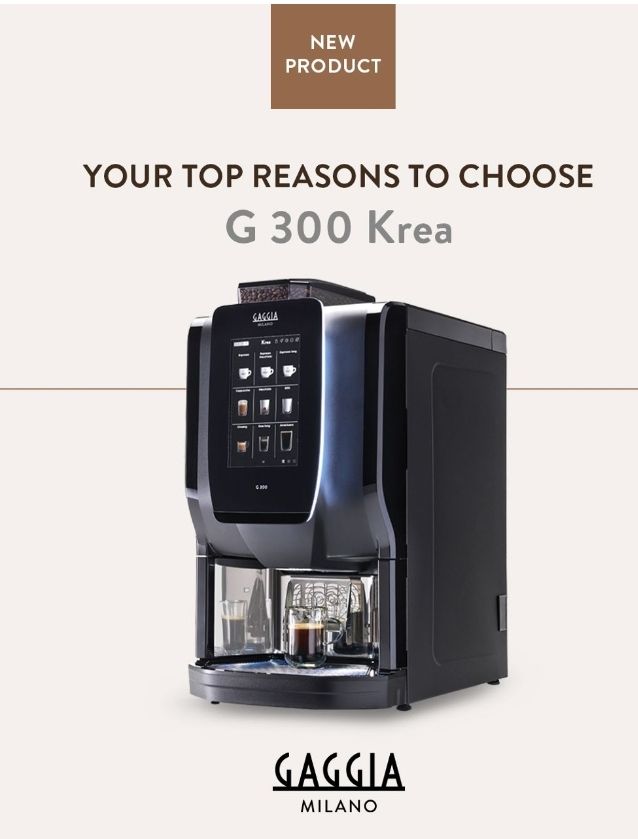 G Line is the new range of super-automatic Professional coffee machines, crafted from Gaggia Milano’s heritage of innovation and passion for coffee since 1938. It is designed to deliver reliable performance, consistent in-cup quality, and long-term sustainable value Equipped with a patented Z4000 brewing system, G 300 Krea ensures an exceptional coffee quality. Built with premium components, it guarantees consistent performance and high productivity, even during peak hours. Its intuitive, customisable interface enhances the purchasing process, making it seamless and engaging for every user. The perfect mix of performance, reliability and user experience.