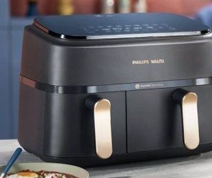 Philips presents a new model of air fryer, Philips Airfryer Dual Basket , to save time thanks to its two baskets of different sizes This innovative Airfryer with a total capacity of 9 l features two compartments: the large basket (6 l) is perfect for main dishes, while the smaller basket (3 l) is the best choice for preparing side dishes. The cooking time of both baskets is automatically synchronised so that the dishes are ready at the same time. In addition, it is possible to quickly set the same time and temperature for both baskets at the touch of a button.