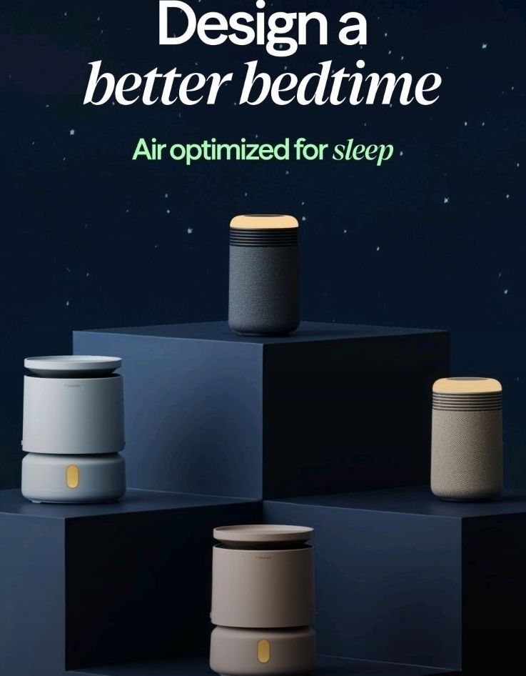 Inspired by aviation, this purifier uses a sculptural nozzle to project high-speed airflow quietly and efficiently. It captures 99.97% of particles as small as 0.3 microns and operates at a whisper-quiet 24dB in sleep mode. With Alexa and Google integration, it’s smart, sleek, and powerful.