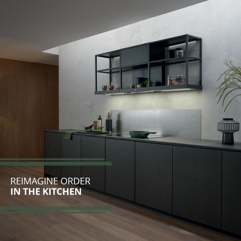 Personalisation and customisation of the kitchen ambiance is enabled by AuroraTechยฎ, automatically adapting the colour and intensity of the hood’s light according to usage and time of day.