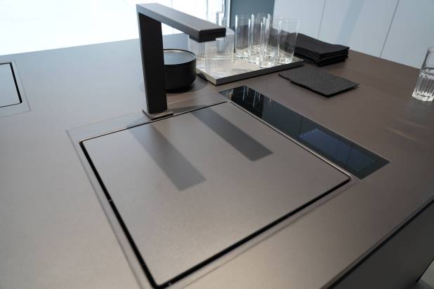 Annette Hollemann, Head of Solitaire the Waterbase, stated that one of the most important products to innovate is the kitchen sink. Customers still complain about the design of most sinks and see room for improvement, especially with more space underneath the sink. The “waterbase” is designed to address this issue. It is an even-levelled plate that is designed to reduce water waste.It can be controlled via display, the so-called “invisible command”.