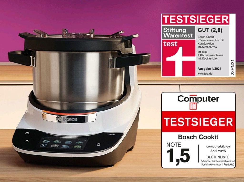 It fries, braises, caramelizes, sous vides with precision up to 200°C, and doubles as a dough kneader, grater, and cutter. With over 30 smart programs and top marks from Stiftung Warentest and COMPUTER BILD, Cookit does it all.