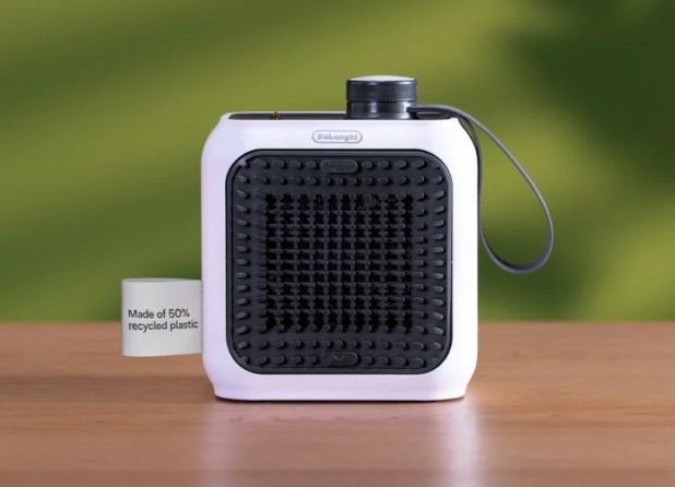 Capsule Desk Loop is the first De’Longhi fan heater made with 50% recycled plastic that makes you feel cozy and comfortable as you sit down to get the job done.Capsule Desk Loop is made with 50% recycled plastic and comes with fully recycled packaging, a significant step towards a more sustainable use of our resources Capsule Desk Loop delivers exactly the right degree of warmth while consuming 5.5 times less energy.*