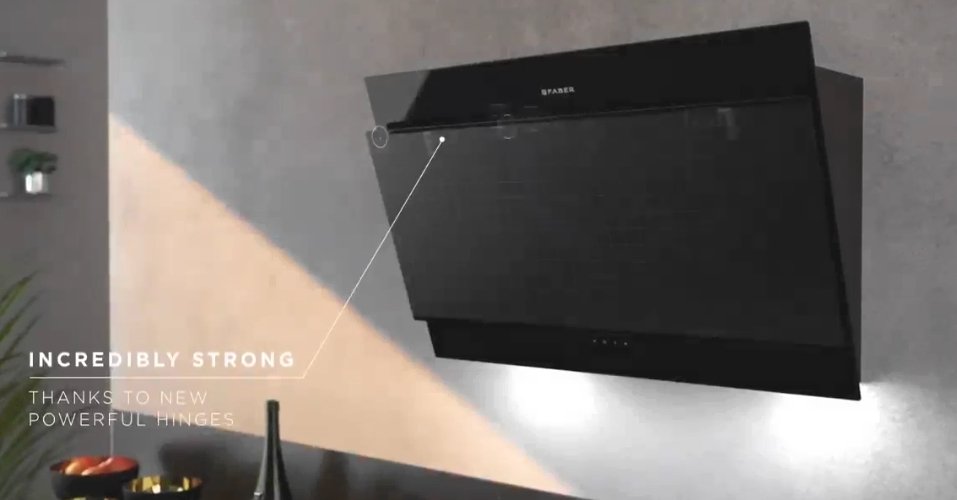 The wall-mounted hood offers up to 900 m³/h extraction with just 56 dB of noise. Home Connect syncs it with your hob for automatic control.