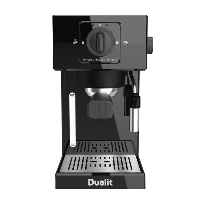 Dualit’s Espresso Coffee Machine is fast, easy to use, makes consistently good coffee and won’t take too much space on your worktop. If you need your morning coffee to be coffee shop standard but without the fuss; this is the machine for you. Whether you prefer freshly ground coffee or mess-free ESE pods, Dualit’s espresso machine will always extract a smooth espresso at a consistent temperature. The espresso machine can also be used to dispense hot water for brewing tea or making longer drinks like an americano. Included in the box is a water softener bag to help soften the water to reduce the limescale build-up in your coffee machine.
