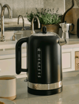 Dualit are Introducing a new sophisticated Matt Black finish for sustainable, stylish and whisper quiet Classic Kettle. With Matt Black being the second best selling colour for their Classic Toasters, and with kitchen design trends continuing to embrace the elegance of monochrome and matt black accessories, the introduction of this matching full-body kettle is set to be an equally popular choice. A sleek new body colour to house engineering excellence such as… Replaceable Element ~ Dualit ground-breaking, patented replaceable element significantly extends the kettle’s lifespan, aligning with our commitment to sustainability. Whisper Boil™ Technology ~ This patented, innovative feature ensures a quieter boiling experience, ideal for open plan living, small spaces or late-night brews. This feature has been awarded the enviable Quiet Mark- the international mark of approval from the Noise Abatement Society. Rapid Boiling ~ Equipped with a superfast 3KW element, the Classic Kettle can boil water in record time, making it perfect for busy mornings. Precision Measuring Windows ~ BPA-Free dual measuring windows make it easy to see both cup levels and litre indicators, ensuring only the right amount of water is boiled – from one cup to 1.7 litres. Durable Design ~ The kettle boasts a non-drip spout, a durable hinged lid, and anti-wobble feet, making it both practical and reliable.