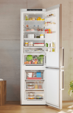 With its Perfect Fit system, the Series 6 allows a 90° door opening without protruding—making it an ideal choice for tight spaces, built-in niches, or furniture integration. Plus, adjustable shelves, racks, and compartments give you complete flexibility in storage.