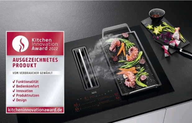 AEG describes: “The reliable removal of food odors thanks to automated extraction, the flexible connection of the cooking zones on both sides of the central extractor hood and its flush finish create a particularly attractive cooking experience. Both the expert jury and the consumers honored the advantages of the FlexiBridge XT with an award in the categories of functionality, ease of use, innovation, product benefits and design .”