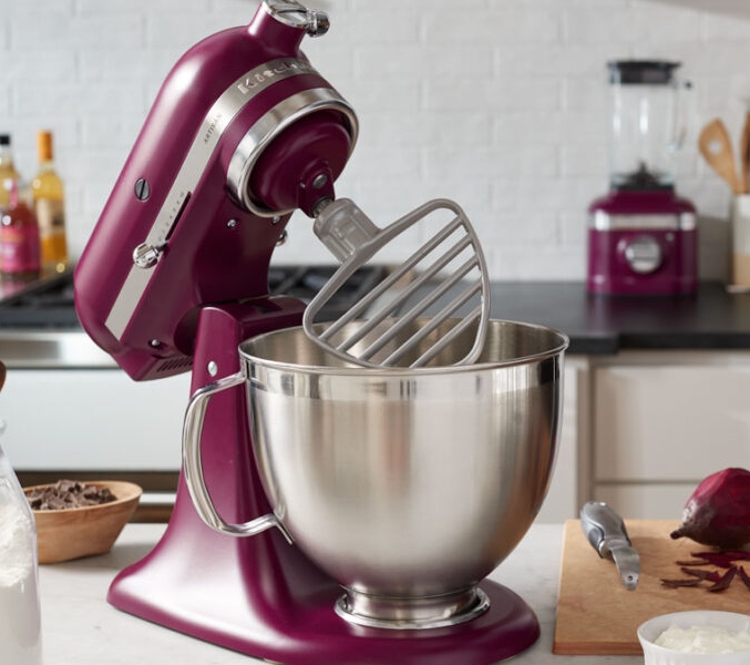 Among the KitchenAid’s small appliances available in beetrot colour, we can find: the K400 variable speed blender and the Artisan series stand mixer. On the surfaces of these products the rich magenta is made more precious by a lush satin finish.