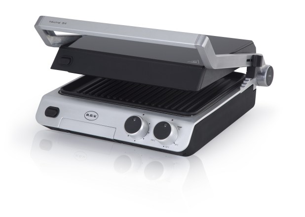 R.G.V. has created a product suitable for domestic kitchens that combines effectiveness and versatility. Industrial Grill is a device characterized by a power of 2000 Watt, able to heat up to 240°C. The selected temperature is reached quickly and kept constant to obtain the best cooking results. In addition, the appliance can be used both as a contact grill (with 5 adjustment levels based on the thickness of the food to cook), and by opening the two plates at 180 degrees to place the food on both surfaces. Using Industrial Grill is simple: the product is equipped with a timer, an adjustable thermostat and a ready-to-use light that alerts the user when the plates are hot. In addition, the thermoplastic handle allows to lift the lid safely. The cooking oils and fats are then collected in a special tray. Finally, cleaning is facilitated by the non-stick and removable ribbed plates and by a spatula to remove food residues.